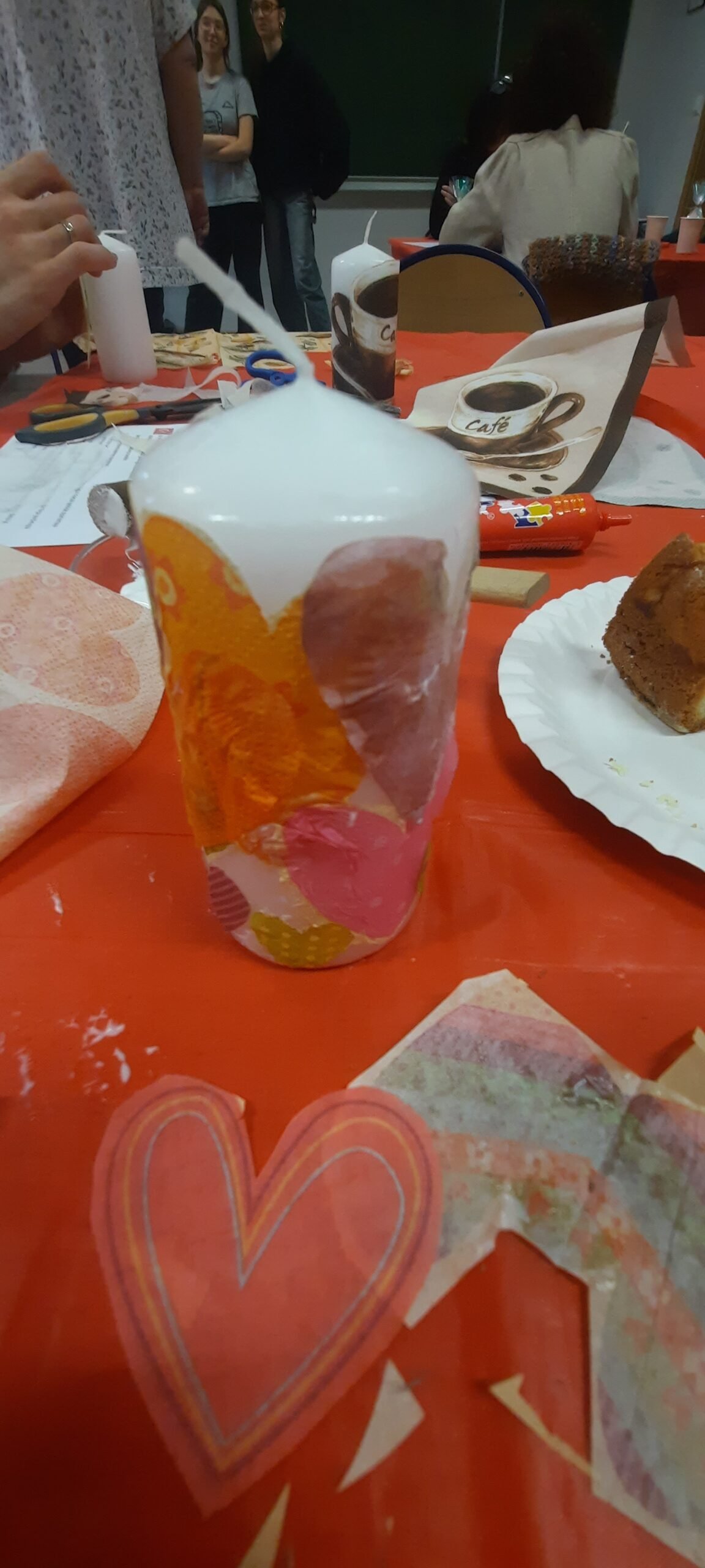 Saat 10.00’da teknoloji tasarım atölyesinde renkli mum süsleme etkinliği gerçekleştirildi. Bir ders saati süren bu çalışmada: