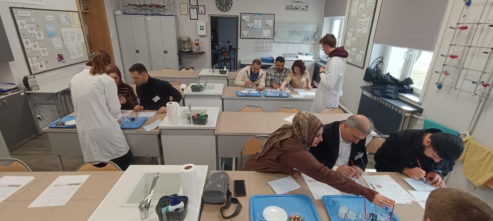 Saat 11.00’de kimya laboratuvarında çeşitli deneysel çalışmalar gerçekleştirildi. Öğrenciler ve öğretmenler birlikte: