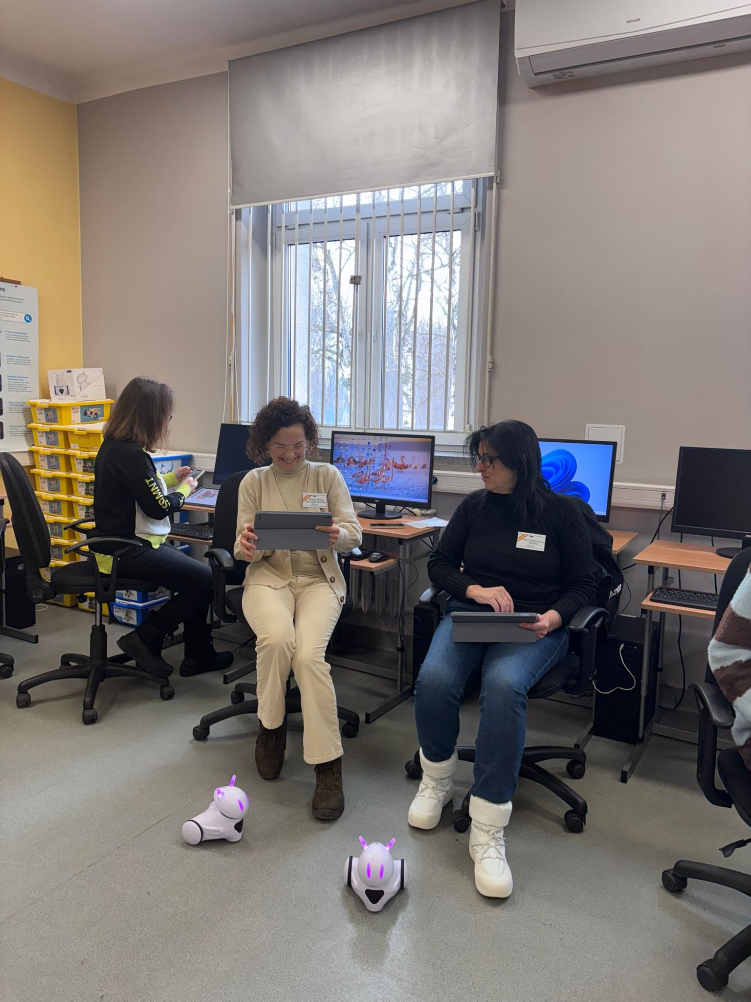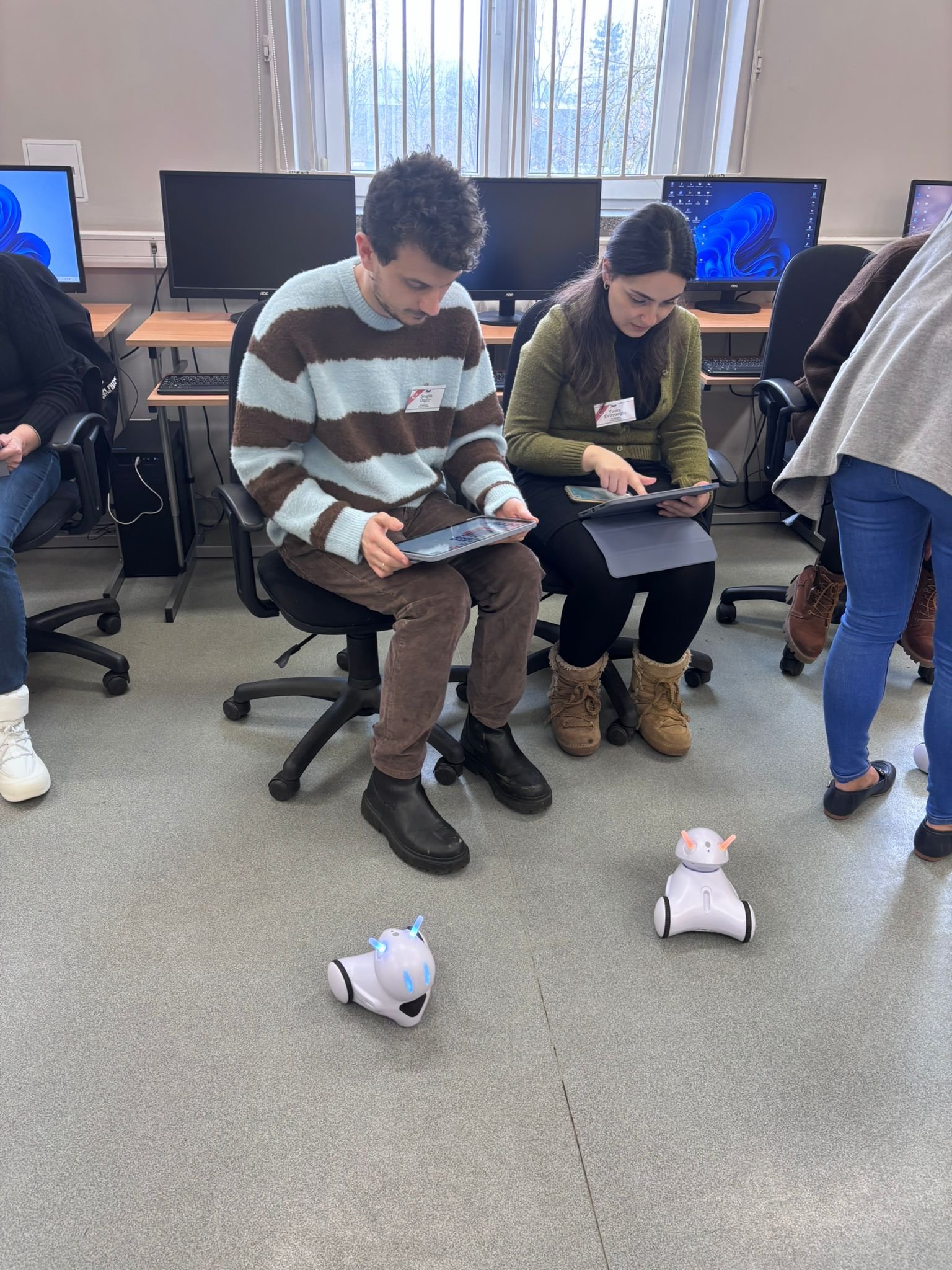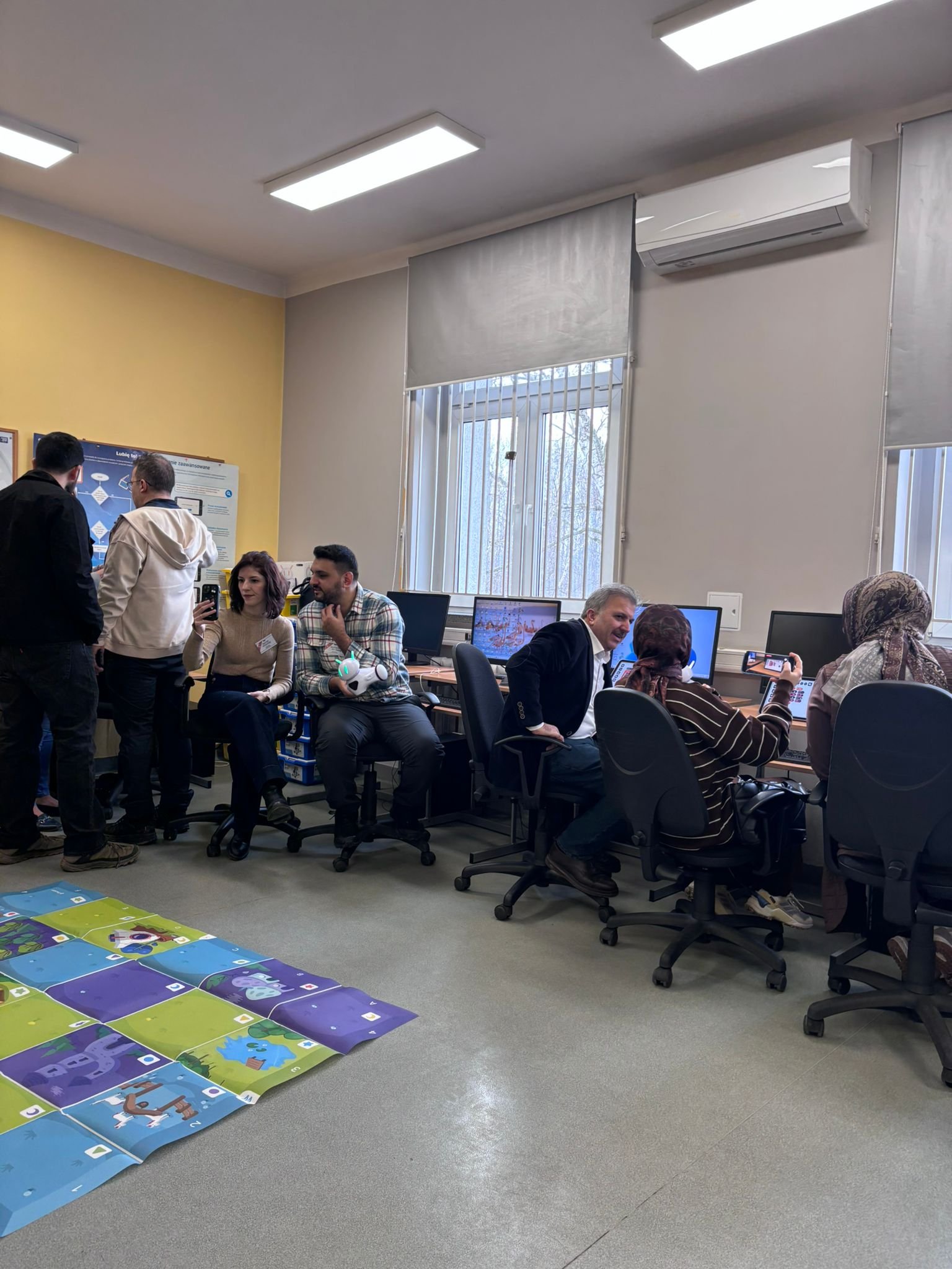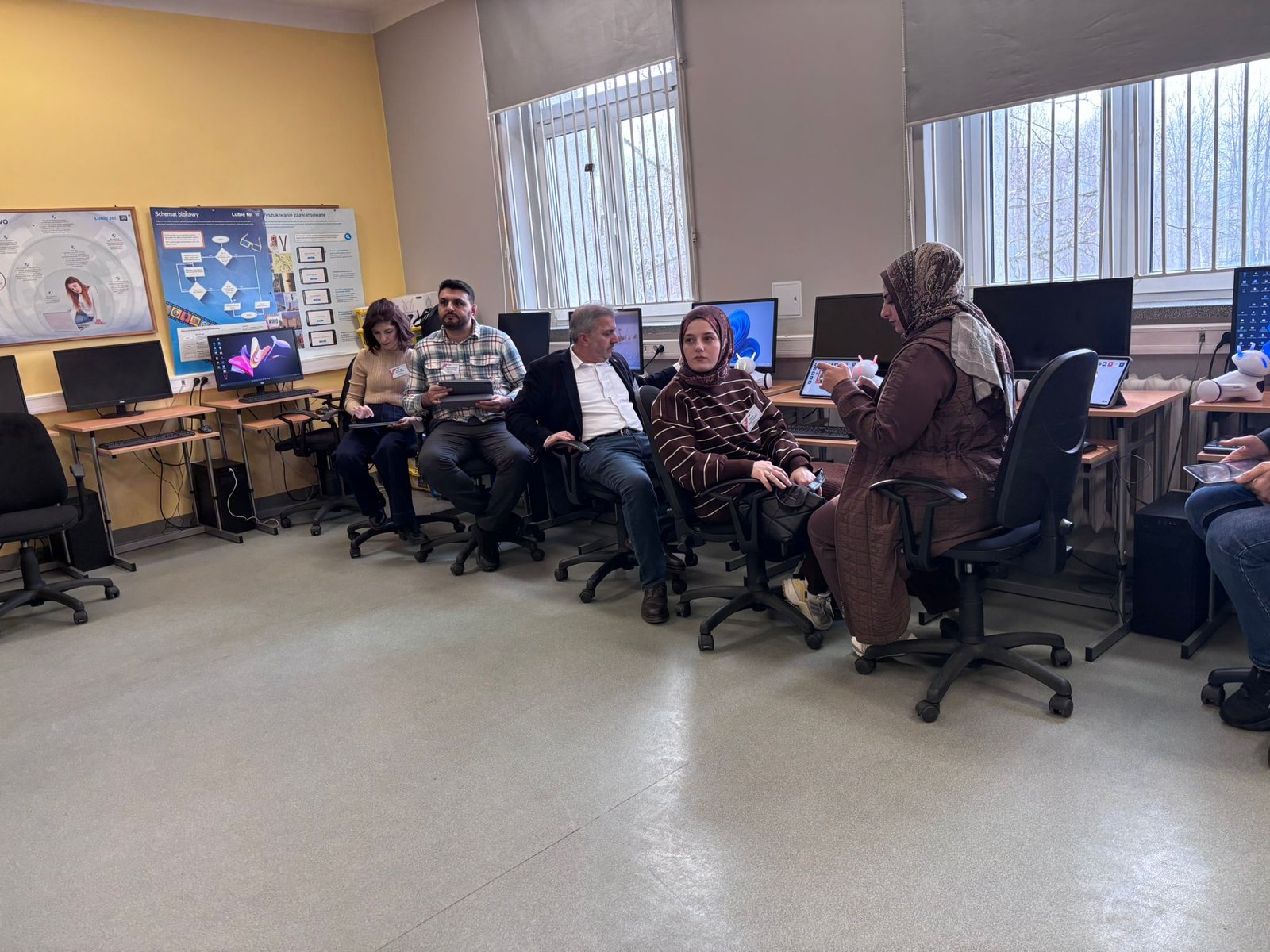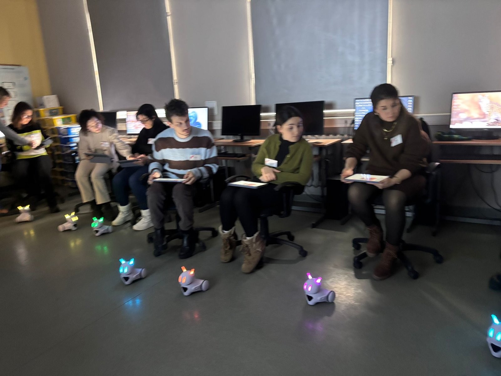 Aynı saat diliminde bilgisayar laboratuvarında yapay zekâ temelli robotik kodlama etkinliği gerçekleştirildi. Katılımcılar: